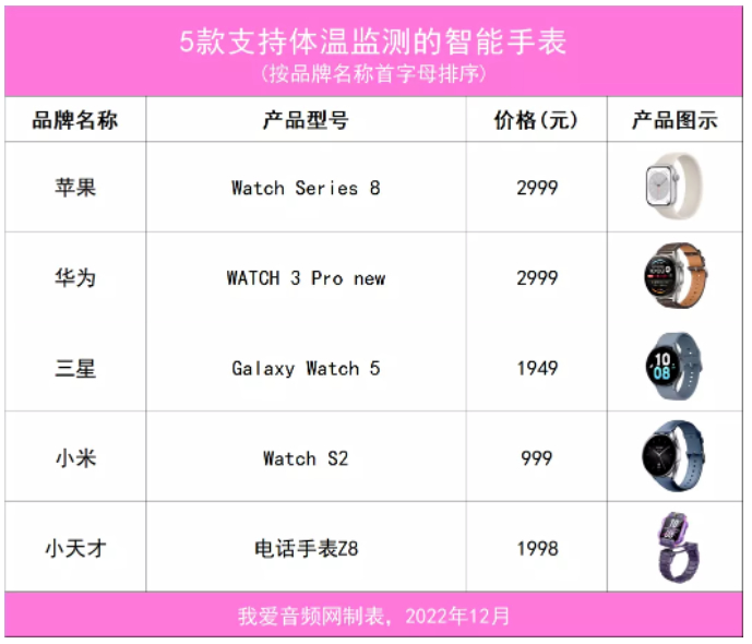 在此之前,我爱音频网已经为大家介绍过 两款可以监测体温的TWS耳机 。在本文中,我爱音频网针对市面上具备体温监测功能的智能手表,进行了整理汇总并作详细介绍。话不多说,下面就让我们来看看都有哪些产品。